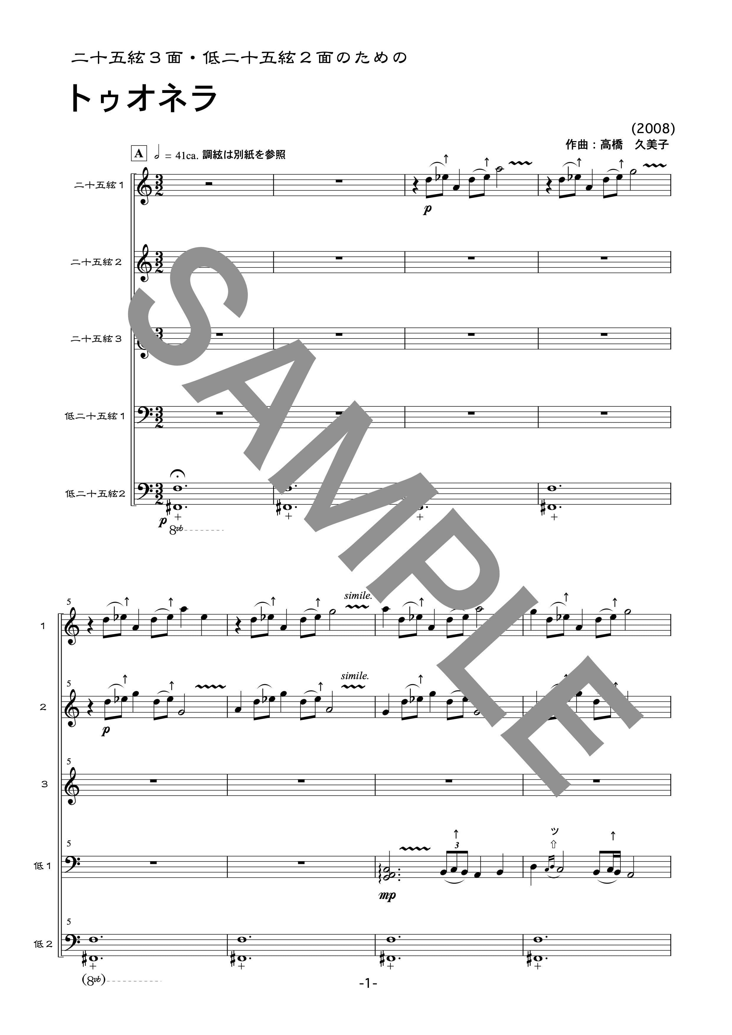 二十五絃3面・低二十五絃2面のための「トゥオネラ」